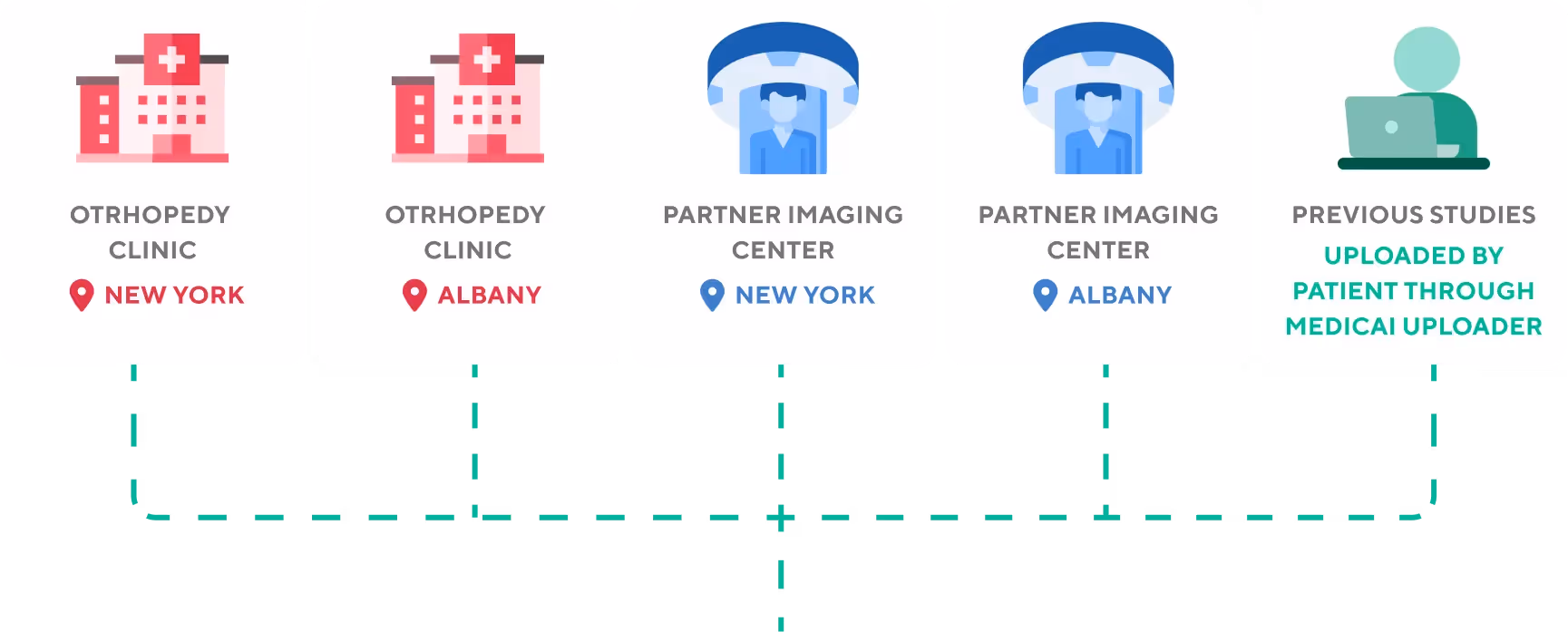 Medicai’s multi-enterprise solution allows clients to connect all their locations and their imaging partner locations. The DICOM Node integrates with on-prem PACS and modalities, automatically retrieving imaging data. Additionally, the solution developed for Medical Imaging Uploader enables patients to send their previous imaging studies directly into their imaging infrastructure.